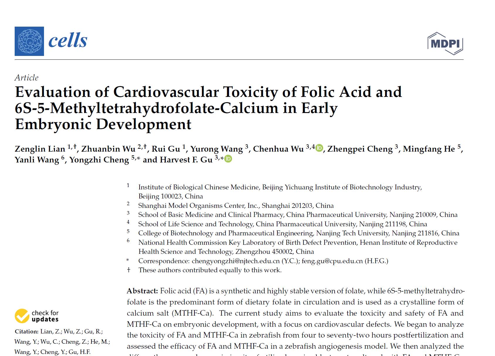 2. Lian Z, Wu Z, Gu R, Wang Y, Wu C, Cheng Z, He M, Wang Y, Cheng Y, Gu HF. Evaluasi toksisitas kardiovaskular Asam folat dan 6S-5-methyltetrahydrofolate-Calcium pada embrionik awal Perkembangan.Sel. 2022; 11: 3946.
